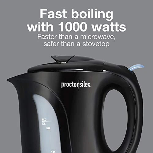 - FAST BOILING WITH 1000 WATTS: With 1000 watts, the electric kettle boils up to 1 liter of water faster than a microwave and safer than a stovetop. Make a quick, hot cup of tea or French press coffee anytime without a long wait — great for hectic mornings.