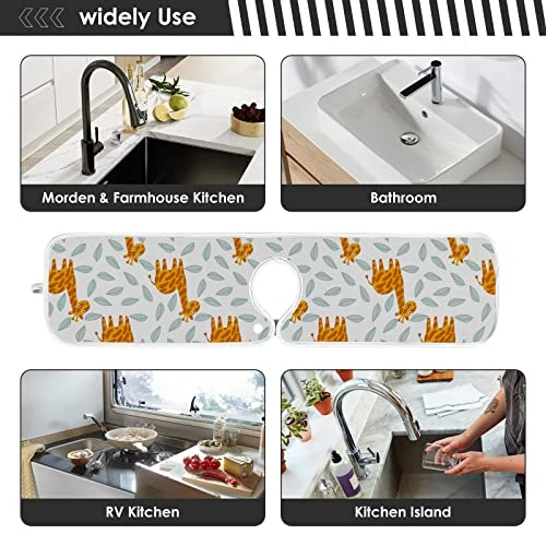 Kcldeci 2 Pack Faucet Mat Splash Guard For Kitchen Sink,Cartoon Summer Giraffes 14×5 Inch Faucet Handle Drip Catcher Tray Absorbent Mat Fast Dry Mat For Kitchen, Bathroom