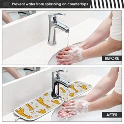 Kcldeci 2 Pack Faucet Mat Splash Guard For Kitchen Sink,Giraffe Blinked 14×5 Inch Faucet Handle Drip Catcher Tray Absorbent Mat Fast Dry Mat For Kitchen, Bathroom