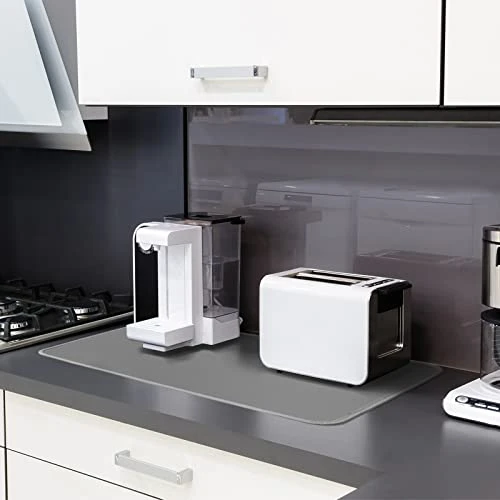 - Anti-skid silicone mat keeps coffee maker in place; put under your espresso machine, line your serving tray, use as coffee bar décor under your coffee cups and more, The mat can protect your countertop from being damaged, so it’s the perfect coffee accessories for coffee bar.