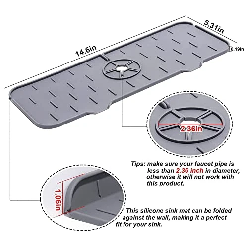 - Suitable For Most: Our Reusable Microfiber Sink Mat Measures Approx,14.6 X 5.6โ, And The Diameter Is About 2.5 Inches, Appropriate Size Can Be Applied To Most Of The Faucets. Of Course, You Can Also Cut The Mat With Scissors To Get A Size That Matches Your Faucet.
