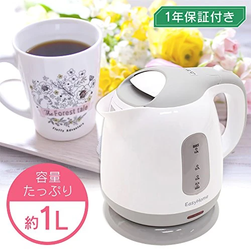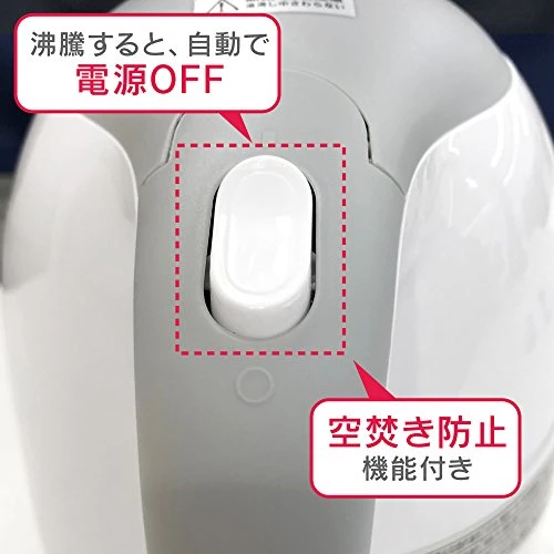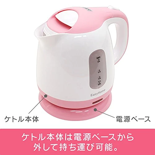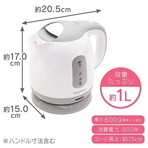 Eco friendly cordless electric kettle for boiling water only when you need a drink or when necessary. Maximum capacity of 33.8 fl oz (1000 ml) means more capacity for boiling water. Able to boil water from a minimum volume of 10.1 fl oz (300 ml) – can be used for as little as 1 serving of instant cup noodles or 5 servings of coffee. Automatically switches off when the water boils to prevent water from boiling over. Caution This product does not have a function to prevent leaks when it falls over. If it falls over, the hot water that is leaked may cause burns. Keep out of reach of children and avoid using it in a location where people may get their feet caught in the cord. Do not turn this product on when there is no water in it. This may cause the product to malfunction. Do not use this product to boil anything other than water. This may stain the product or cause it to malfunction. This product does not come with a heat retention function. Put only the necessary amount to boil whenever the need arises. A fashionable simple design. Power Supply: AC100V (50/60 Hz) Power Consumption: Approximately 800W Cord Length: Approximately 29.5 inches (75 cm)