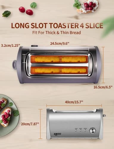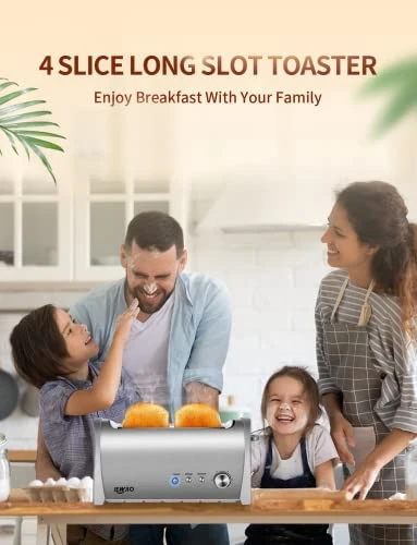 - 🎁【BEST RATED PRIME TOASTER 】- This premium kitchen toaster has a modern design with a high-quality stainless steel housing and a classic gray color that blends into a variety of environments. The space-saving long-slot toaster fits on the counter for easy storage. The long four-slice design allows you to toast four slices of bread or two extra-long slices of bread for your family at once, making it a great choice for home toaster.