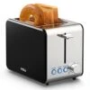 - 🎁【6 BROWNING SETTINGS BLACK TOASTER】- The best rated kitchen toaster has 6 browning settings, from “light” (1) to “dark” (6), which can be adjusted by the browning regulator that controls the baking time. The baking time is the 70s to 210s, suitable for different toast needs, allowing you to make light, medium, and crispbread in a few minutes, and enjoy a nice breakfast with family and friends. After setting the desired degree of browning, insert the bread into the toaster extra wide slot.