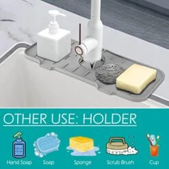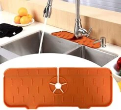 - 【Self-Draining Design】This faucet mat is made of silicone, soft and reliable, reusable, won’t scratch your countertop and is easy to use. It automatically drains water around the faucet into the sink, keeping your countertops dry and clean.