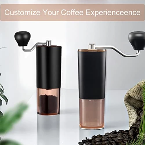- 【Easy to Carry】the portable mini coffee grinder is an innovative design of double bearing fixed structure. The stainless steel burr grinding core saves time and labor, is stable and does not jam beans, and the powder is more uniform. Portable manual coffee grinder can not only be used at home, but also travel with Coffee grinder. It is suitable for outdoor camping, camping, hiking, etc. Stainless Steel Conical Burr hand grinder must be the best choice for your home life.