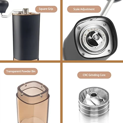- 【Easy to Clean】: After using the hand coffee grinder, it can be easily disassembled and cleaned. Please dry it thoroughly after washing. Extended durability.This stainless steel Conical Burr manual coffee grinder is very cost-effective and you deserve it. (Reminder: Due to different shooting scenes, display equipment and other conditions, there will be slight color difference in the product pictures, please refer to the actual product. )
