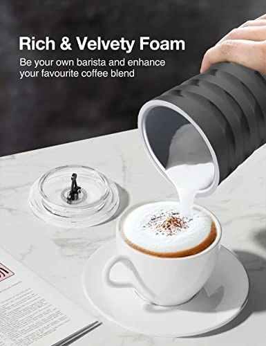 - 🥛【Lush, Velvety Milk Froth】Elevate your at-home latte experience with this premium milk frother and whip up thick, barista-style foam to pour over your coffee, latte, hot chocolate or cappuccino