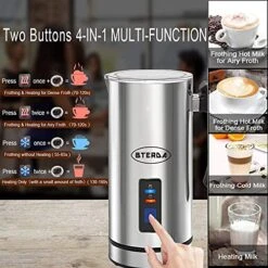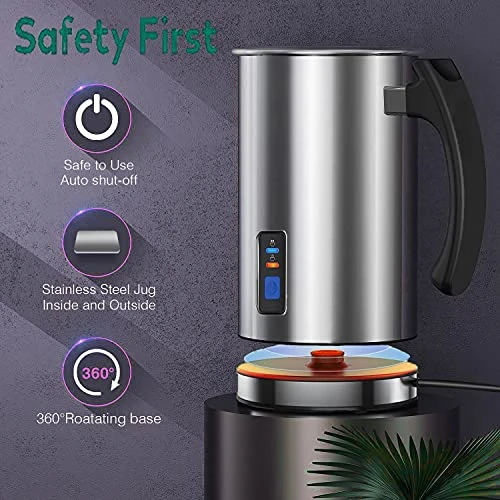 - 【Easy-to-Use Touch Button Control】Simplicity at its best, this professional milk frother for coffee feathers a touch LED control panel.Automatic Milk Frother can help people who have no barista experience.Designed for coffee drinkers, Enjoy silky foam coffee anytime, anywhere.This milk frother and steamer features high-quality 304 food-grade body stainless steel material and non-stick coating interior for effortless cleaning,perfectly saving your time.