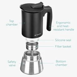 - FOR ALL STOVES: This coffee pot for homemade espresso is suitable for use on any type of stove top. Whether you have an induction, electric or gas stove, you can get true Italian style coffee at home. It’s even great for making coffee while camping.