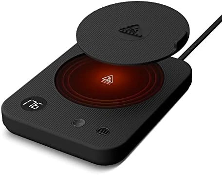 - BIG, BUT LIGHTER – 3.6-inch diameter oversized heating area. Keep various containers warm, even if it’s a coffee pot. 9.5 oz weight is as light as iPhone 13 Pro Max, which makes it possible to carry daily. Five feet power cord, no more extension cord needed to enjoy entire-day-warmed coffee on your office desk or side table.