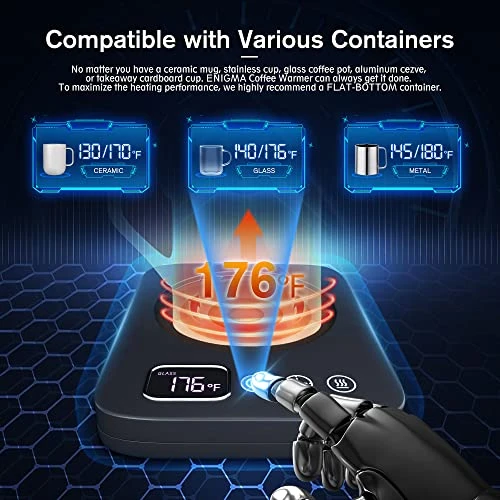 - SAFE & ECO-FRIENDLY – ENIGMA coffee warmer offers 6 timer settings, from 2 to 12 hours; switch the best one according to your varying needs. Small kitchen appliances are supposed to be helpers in your home, not a threat to your safety. The gravity sensor detects the heating area all the time. The cup warmer will automatically shut off if the heating area is unoccupied.