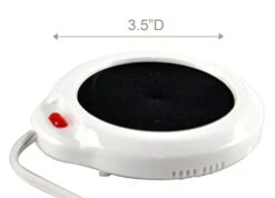 - MATCHING MUG: This coffee mug warmer comes with a matching ceramic mug designed to fit perfectly on the electric plate. However, you can use this electric plate coaster for any kind of mug or coffee cup. It’s safe to use with any cup designed for hot liquid. The surface of the heated coaster is 3 ½” in diameter.