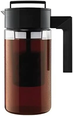 - The Fine-Mesh Coffee Filter in this cold brew coffee maker keeps grounds out of your freshly brewed pot – differing from other coffee machines. Tritan plastic withstands hot temperatures if you want a hot cup of coffee. Fits in most refrigerator doors