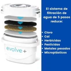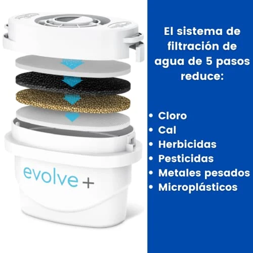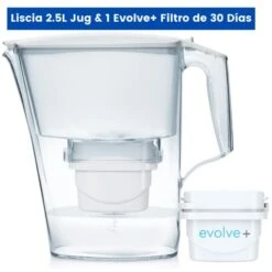 - Make an impact Liscia and Evolve+ filters are 100% Recyclable and each filter replaces 100 single use plastic bottles.Powered by Evolve+ Our patented 5 step filtration technology efficiently filters water to reduce impurities including microplastics, chlorine, limescale, herbicides, pesticides, lead and heavy metals..Everything you need Includes (1x) Evolve + Filter Cartridges which last up to 30 days