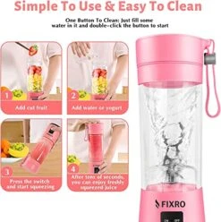 - 🍉Portable and Powerful – Personal Blender has a 3.7v battery, six stainless steel blades are quickly mixed and the speed is 18000 rpm. You can quickly drink healthy juice and milkshakes.