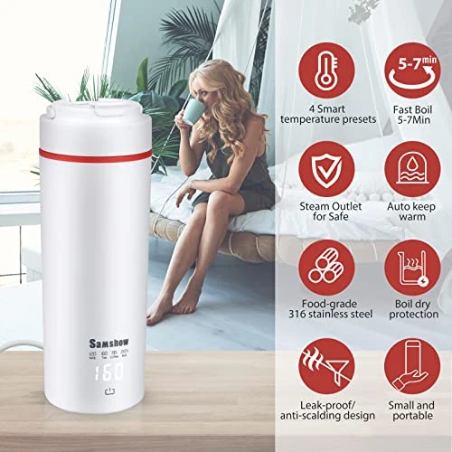 - ✅TRAVEL ELECTRIC KETTLE WITH 4 SMART TEMPERATURE PRESET –This portable water boiler is designed with real one-touch premium temperature control so you can quickly set the temperature. The portable mini electric kettle preset temperatures are 212-195-160-120°F,suitable for milk, black tea, coffee, green tea, fruit tea, etc. Travel tea kettle inherits all the features of kettles, thermos and cups, meet different needs.