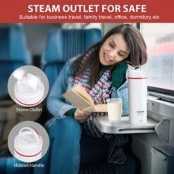 - ✅AVOID SCALDING +LEAKAGE PROOF–Newly upgraded exhaust vents of the travel kettle electric small, which can help reduce the pressure when boiling water. With the integrated seamless interior and sealing ring in the lid, the water will be tightly locked inside the kettle so that no water droplet will leak from the bottom of the lid of the portable kettle for travel even after a long ride. And the double-wall design can provide the safe touch and reduce the noise of boiling water.