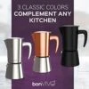- 【Compatible with all Stovetops】This stovetop espresso maker is suitable for any stove, such as gas, induction stove, ceramic stove, electric stove, alcohol stove, and propane camping stove. You don’t need to go out, you can easily make your favorite lattes, mochas, smoothies, macchiatos, cappuccinos, and americanos. It could be cleaned with a dishwasher.