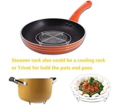 - 4. The 5″stainless steel steamer rack not only as a cooling holder for cookies,pies and hot dishes, but also could be a trivet to hold the hold pans.