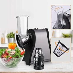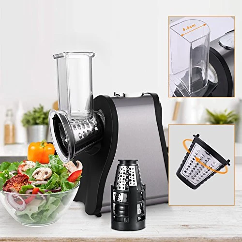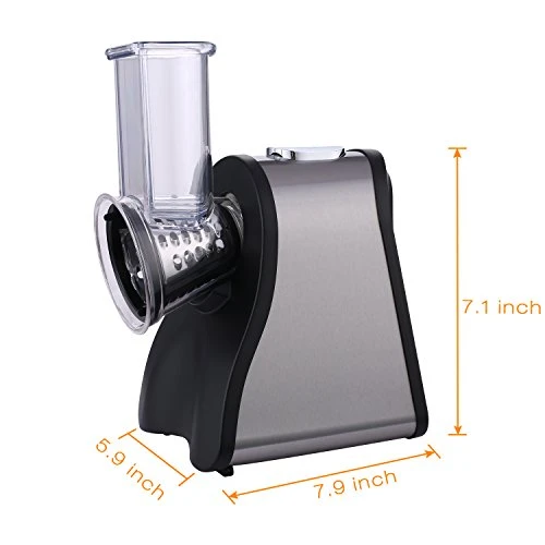 - [COMPACT DESIGN] Rugged slicer boasts an impressive 200W power rating, components of stainless steel and plastic. Compact enough to fit most anywhere, even in a drawer and a corner of the table.