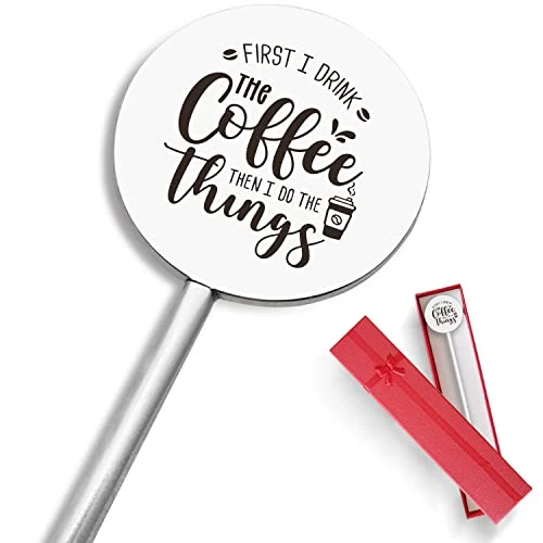 PZJIEAN First I Drink The Coffee Then I Do The Things, Funny Engraved Stainless Coffee Stir Sticks With Gift Box, Gifts For Women, Men, Boss, Coworker, Friends, Coffee Lover
