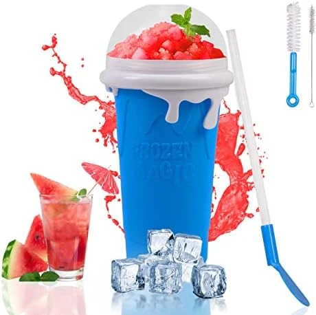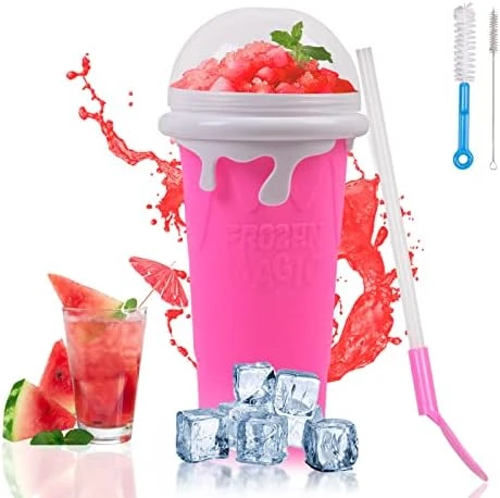 - 【Easy To Use】This frozen magic squeeze cup are very easy to use. You just need to put it in the freezer 4-5 hours in advance, then pour in any drink you like, followed by squeezing it constantly with your hands for 1-3 minutes, and you’ll have a delicious smoothie. Note: If you put the drink in the fresh layer 1-2 hours in advance, then it will turn into a smoothie better and faster.
