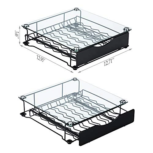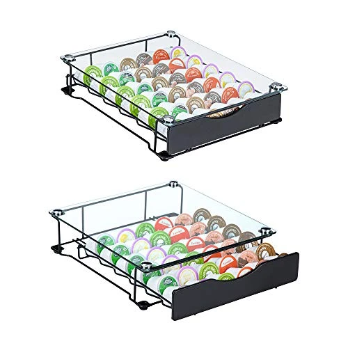 - 【Saving Time to Organize】Flagship k cup holder drawer adopts tilt placement. This non-fence placement design is easy to assemble k-pods quickly and prevent coffee pods messy up because coffee capsules don’t tip during pulling. Combined with tempered glass top, you can find the taste quickly too.