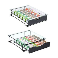 - 【Highlight】Compared with tiered k cup organizer, this single tier k cup organizer can be placed under regular height cabinet when a coffee maker and coffee cups are on the top. It’s a complete coffee break corner that you can place it on office/kitchen/living room.