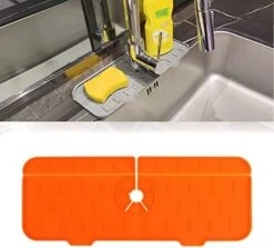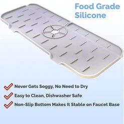 - 【Upgrade Silicone Kitchen Sink Splash Guard】Our new designed for faucet splash guard is better than other fabric type on the market. Our silicone faucets pad designed with the draining, so you’ll never worry about the water stay on the mat or counter.