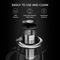 - WIDE MOUTH & EASY TO CLEAN – A wide opening and removable kettle lid means both easy cleaning and filling. The tea infuser has an separate lid to allow easy filling with tea leaves. A simple twist removes the infuser to allow cleaning after every time use.