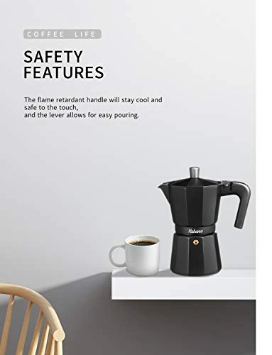 - SAFETY FEATURES: The flame retardant handle will stay cool and safe to the touch, and the lever allows for easy pouring. And the safety valve regulates the internal pressure of this pot by releasing the pressure during the brewing process.