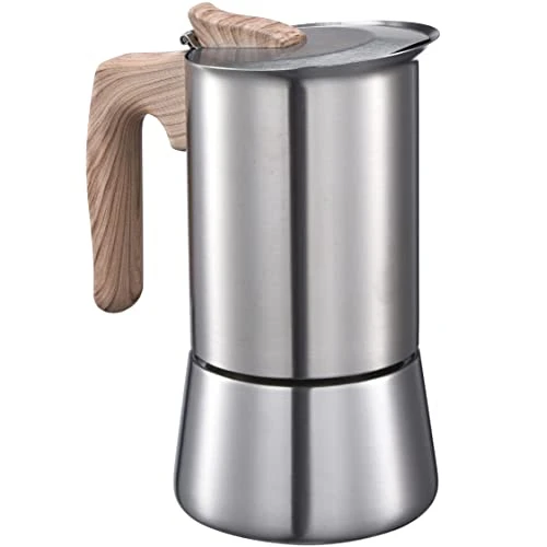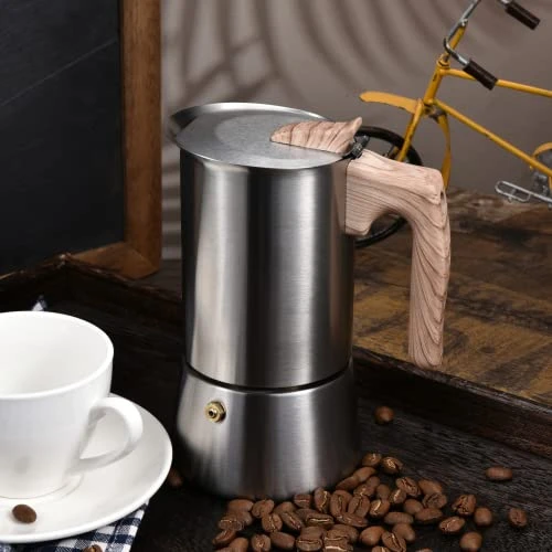 - ⚡ Made of high-quality stainless steel, this stove top coffee maker is made for durability and easy cleaning. Works on induction, gas, electric, and camping stoves, with advanced sanded handle for excellent heat insulation and comfortable grip