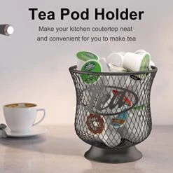 - Sturdy – Tea pod holders for k cups only takes up a small portion of your precious space while fitting nicely next to your coffee maker. Saves a lot of space, easy to refill and organize product.