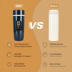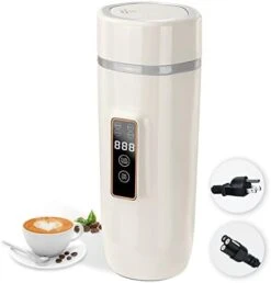- 🚗【Convenient and healthy】: The portable electric kettle measures 2.56″ x 3.23″ x 8.46″ x and weighs 1.1 lbs (500g) and fits easily in a backpack, suitcase or car cup holder. 300w quickly heats 350ml of water in about 6 minutes. Provides convenient hot water service for your travel, camping, hotel or office.