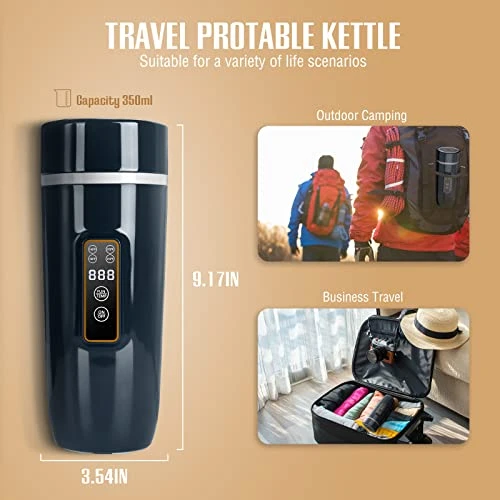- 🎁【4-speed temperature adjustment design】: 140-175-195-212°F (60-80-90-100°C), 4 different temperatures, enjoy at your own pace. Suitable for brewing milk, brewing coffee, brewing tea, hot chocolate, etc. The portable travel kettle uses a touch screen and can display real-time water temperature, which is very simple and easy to operate. The perfect gift for fathers, mothers, wives, husbands, and friends.