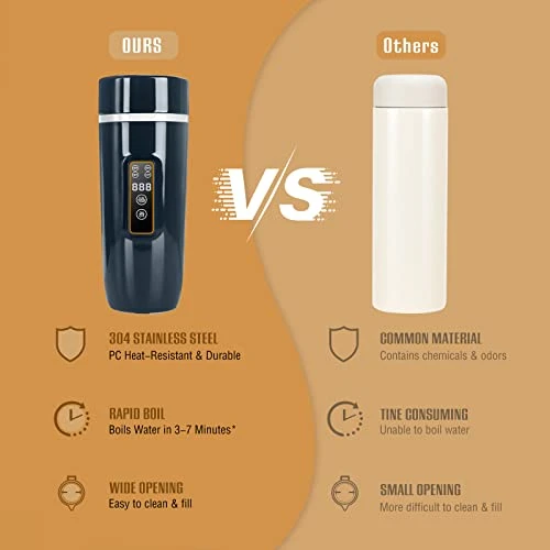 - 🍵【Safety travel electric boilers】: The hot water boilers electric is made of food-grade 304 stainless steel with food-grade silicone seal, 100% BPA-free, double-wall design without worrying about scalding your hands and keeping hot water for a longer time. Thermoses the bottom of the has a non-slip silicone pad to prevent the kettle from tipping over.