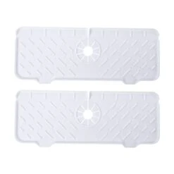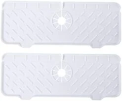 Volkmi 2PCS Silicone Sink Splash Guard For Kitchen & Bathroom, Faucet Handle Drip Catcher Tray, Faucet Splash Catcher Drying Mat, Sink Draining Mat Behind Faucet For Farmhouse, RV (White)