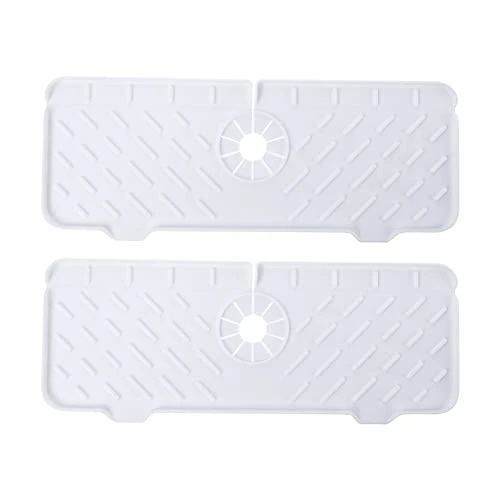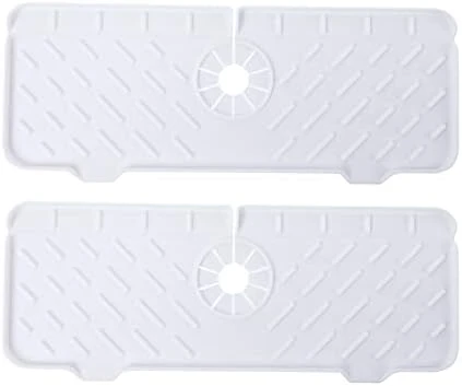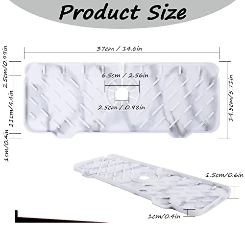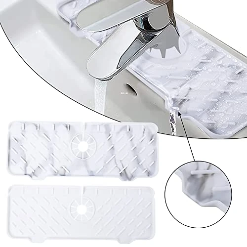- ✨【Multi-Functional】It’s not just a faucet mat, you can also put your toothbrush, cup, hand sanitizer and dish soap on this Faucet Silicone Drain Pad and use it. It can also be nice a small organizing pad. Perfect kitchen & bathroom countertop sink accessories.