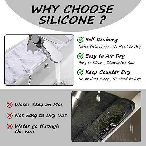- ✨【Durable Silicone】Unlike the fabric version on the market. Our silicone water catcher pad is made of food-grade silicone, soft and reliable, reusable and durable, won’t scratch your utensils, safe to use and easy to clean.