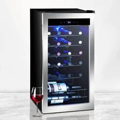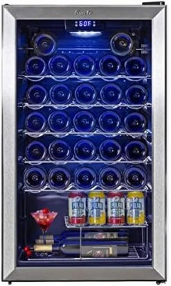 - Removable Metal Rack: The slippable bottle holder of the 19 inch wine fridge allow you to organize the interior space and a easy wine storage and removal. Soft LED lights gently illuminate your collection.