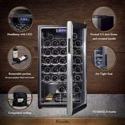 - UV Protection: Double-pane glass door of the 33 bottles wine cooler can block UV rays. Strong sealing keeps the interior insulated, ensure the stability of temperature, better maintain the aroma and flavor of the wine.